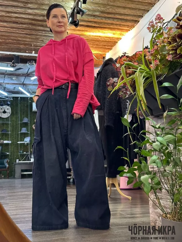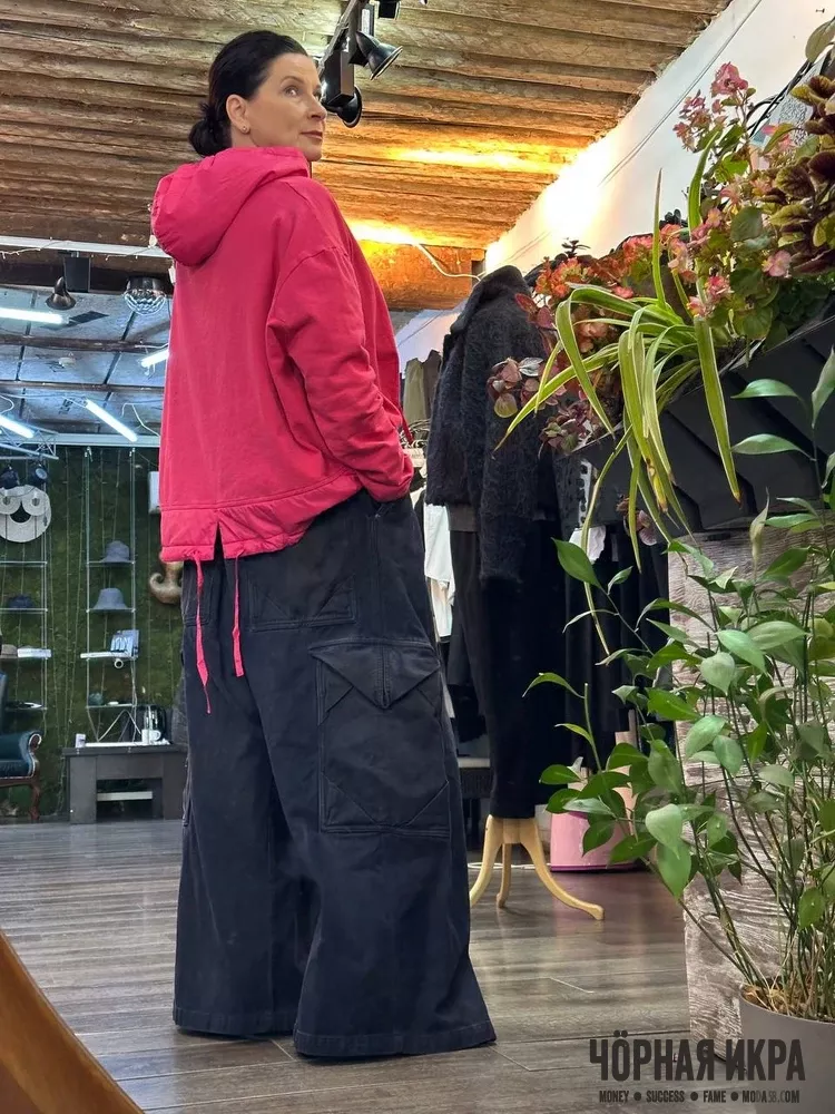 Образ первый: минимализм с характером 🎯 Топ с капюшоном из 100% хлопка — та самая вещь, что доказывает: базовый гардероб может быть дерзким. Малиновый спортивный шик в паре с широкими чёрными брюками создаёт контраст, от которого невозможно оторвать взгляд. Размер М, удобство максимальное, эффект — мощный.