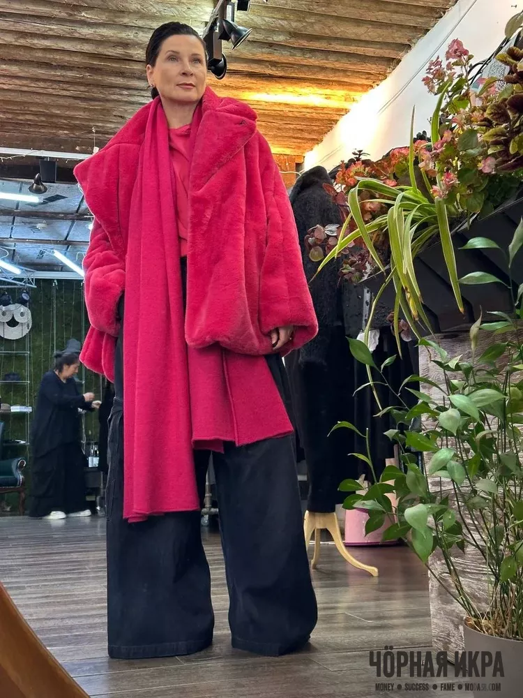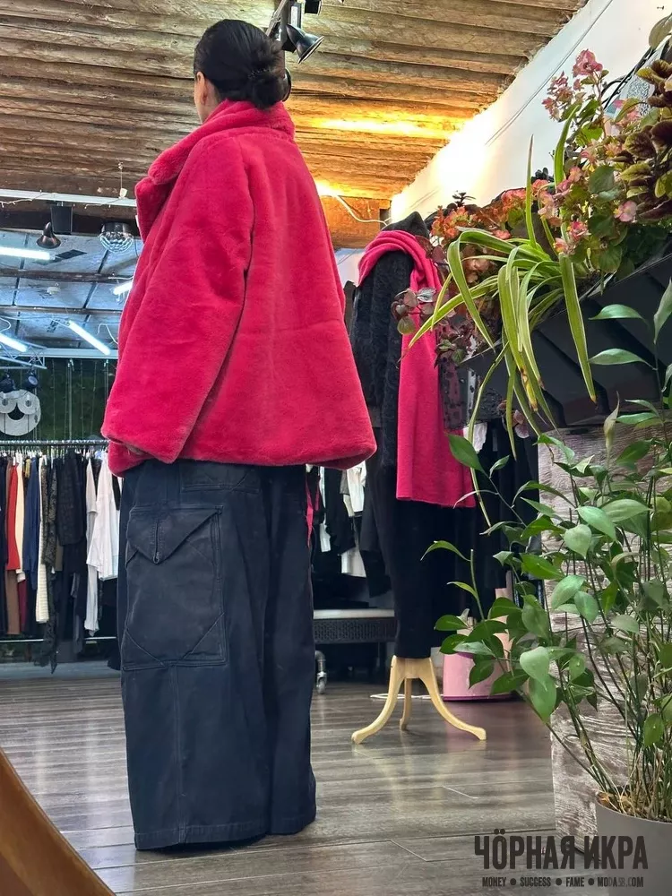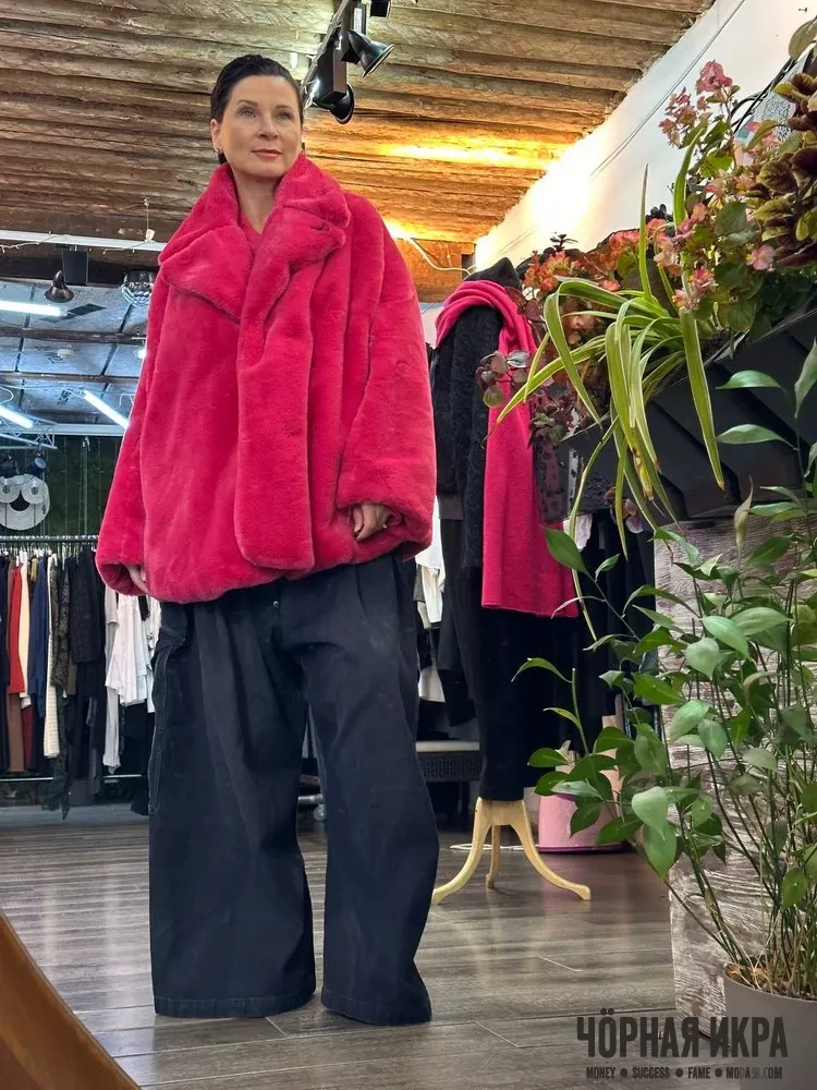 Шубка из искусственного меха цвета спелой малины превращает обладательницу в движущееся произведение искусства. Рукава-фонарики, мягкая текстура, размер S (российский 44-46) — это тот случай, где роскошь говорит тихо, но все слышат. Искусственный мех доказывает: этичность и элегантность — синонимы.