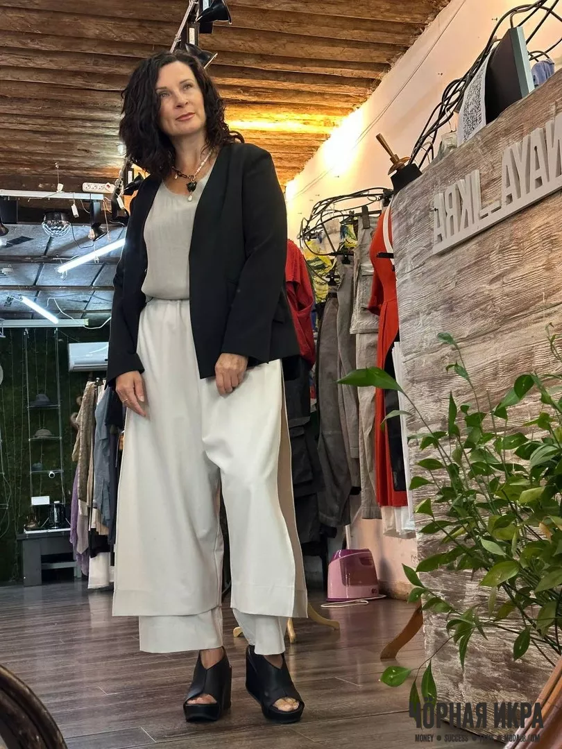 Широкие брюки — это манифест против тесноты не только физической, но и ментальной. Они говорят: «Мне нужно место для мыслей и движений».