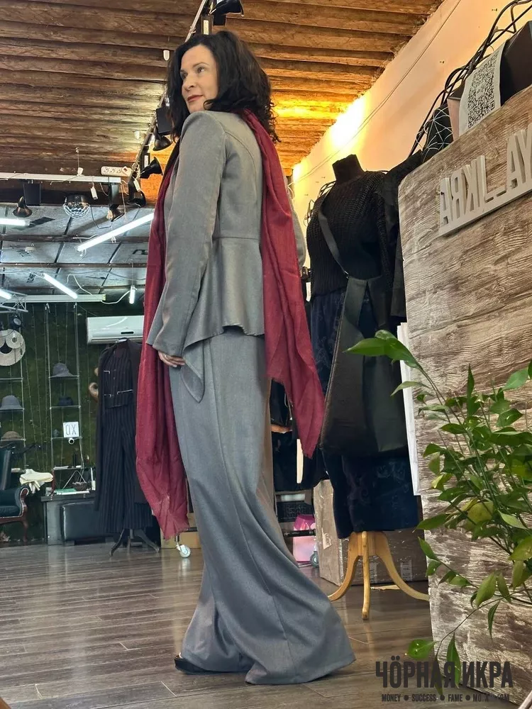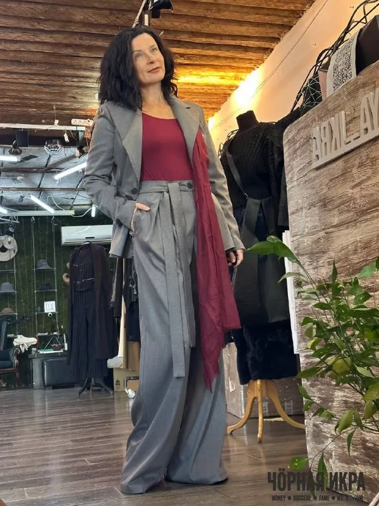 Этот образ создан для женщин, которые понимают: настоящая роскошь кроется в качестве тканей и безупречности кроя. Сочетание La Haine Inside Us и Sarah Pacini — это диалог между строгостью и мягкостью.