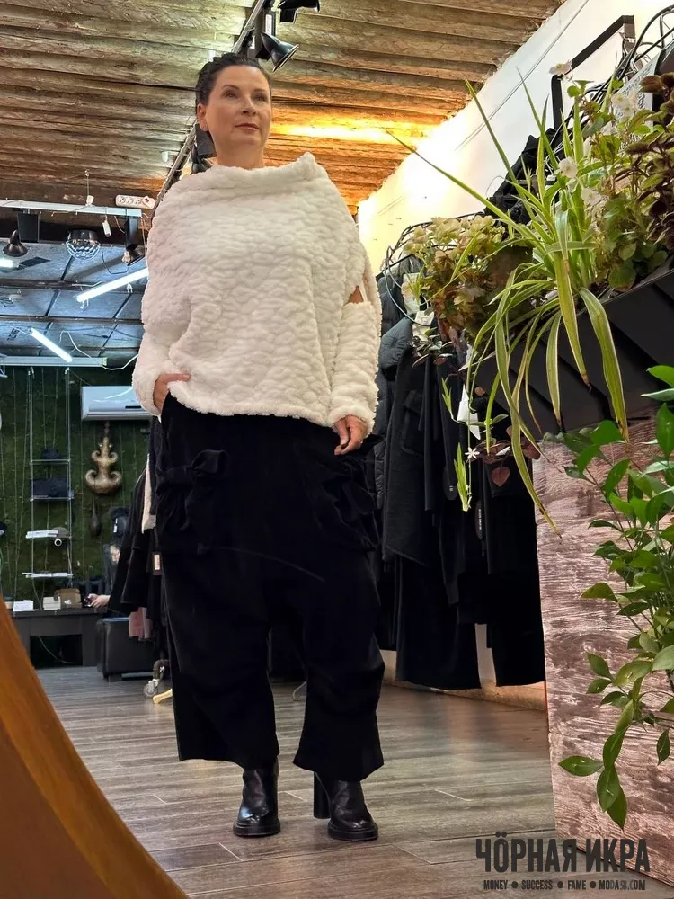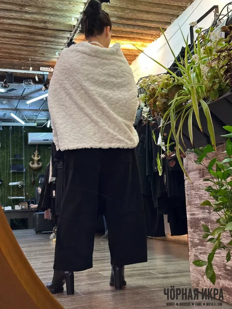 Здесь работает классическая формула: белый верх + чёрный низ. Но это не банальность — это архетип, доведённый до совершенства. Текстура имитации овчины создаёт визуальную мягкость, а бархат добавляет тактильную глубину.