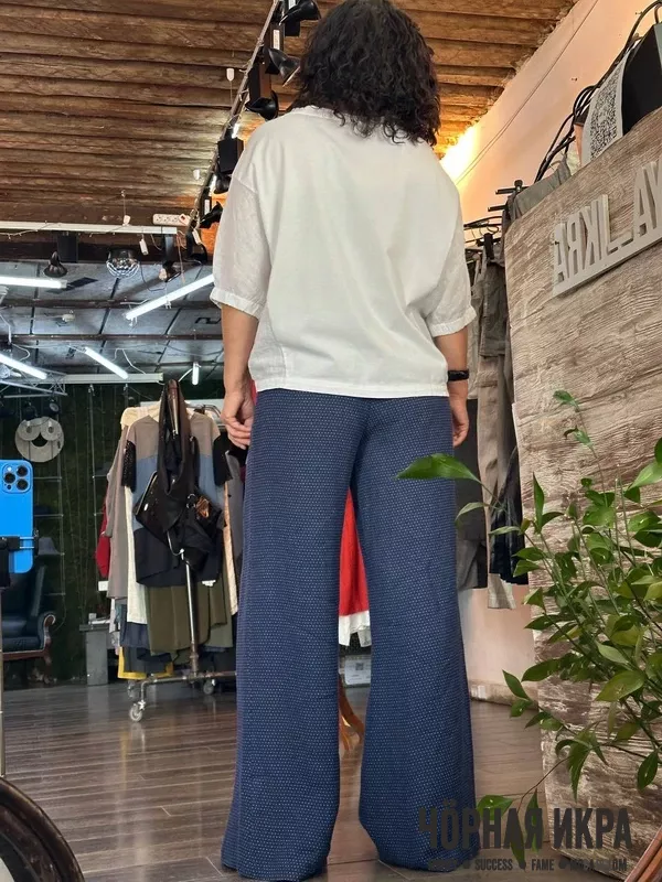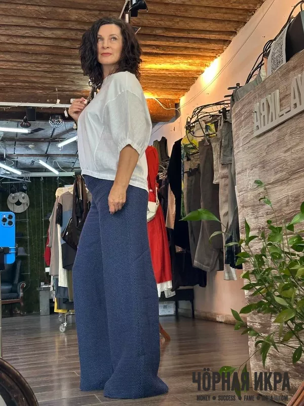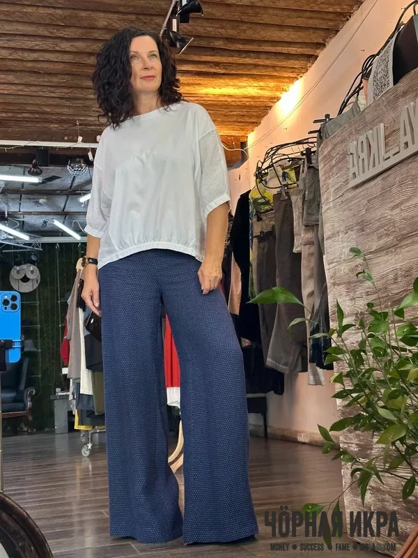 Льняные брюки струятся, как поэтические строки, а хлопковый топ дарит ощущение легкости бытия.