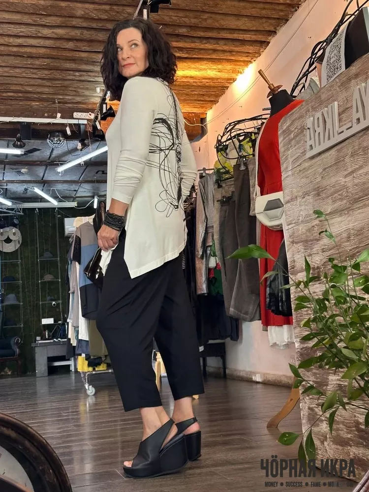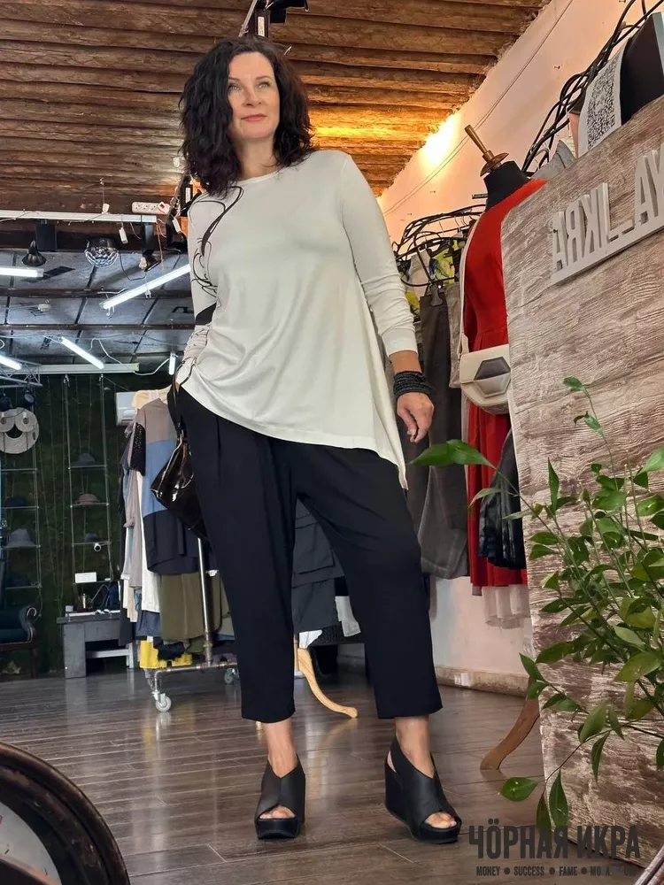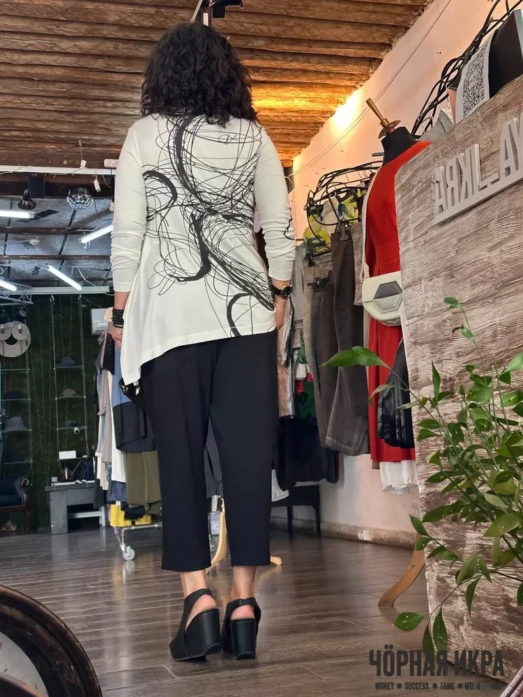 Асимметрия как философия стиля — этот комплект доказывает, что математика может быть поэтичной. Удлиненный топ с графичным принтом и укороченные брюки создают идеальную пропорцию золотого сечения в мире моды.