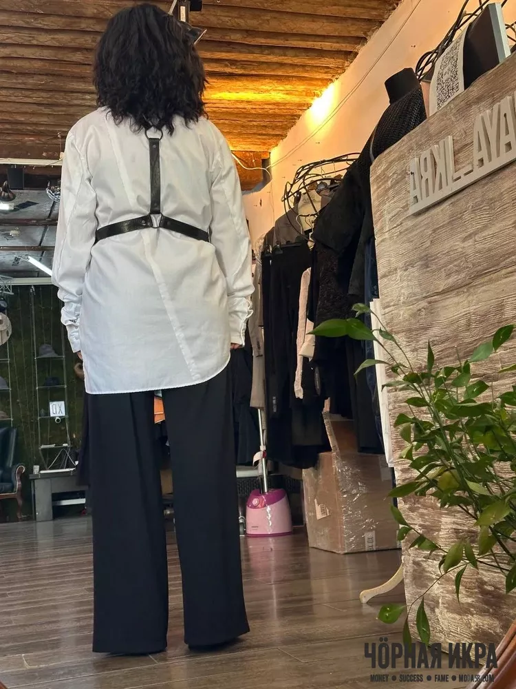 Асимметричный крой превращает классическую рубашку в архитектурный объект. Это не одежда — это заявление о том, что правила созданы для того, чтобы их переосмысливать.