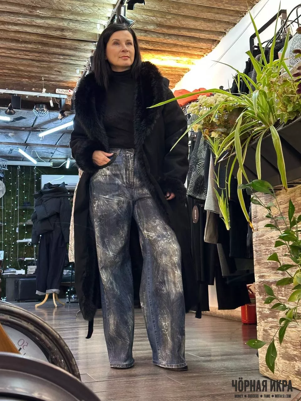 Джинса как холст, мех как роскошь 🖤✨