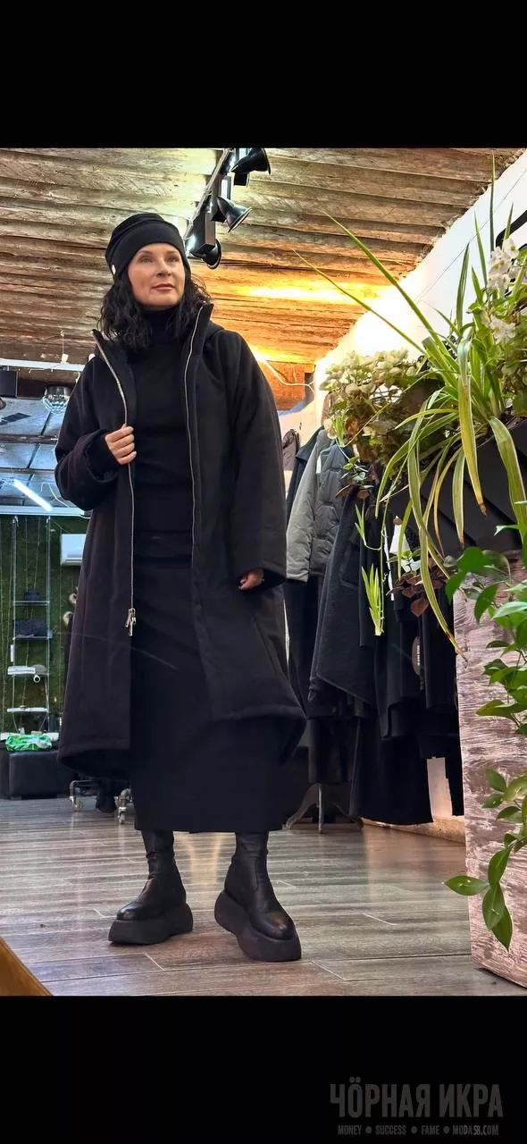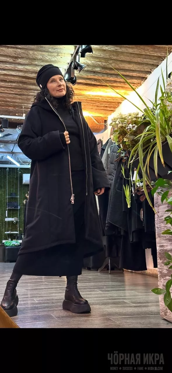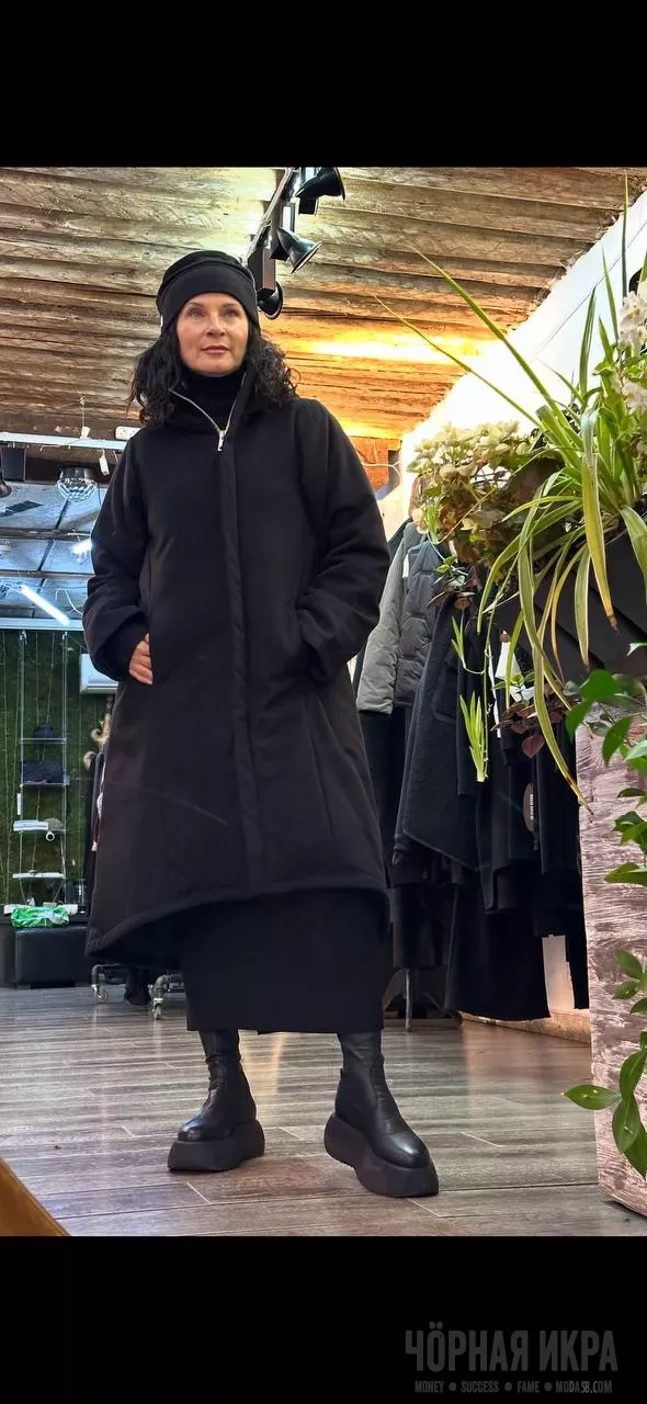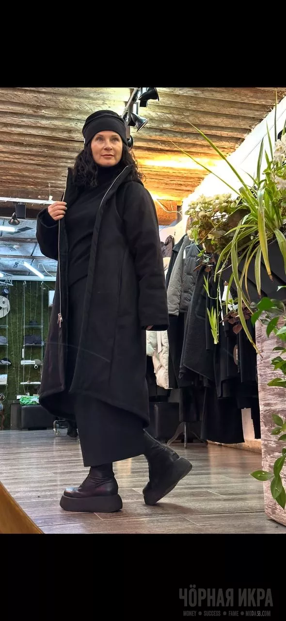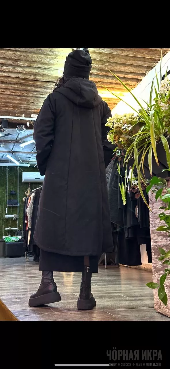 Асимметричная молния, объёмные карманы, длина до середины икры — это не просто крой, это архитектурное решение для городских зим. Чёрный цвет не поглощает свет, он его концентрирует ✨