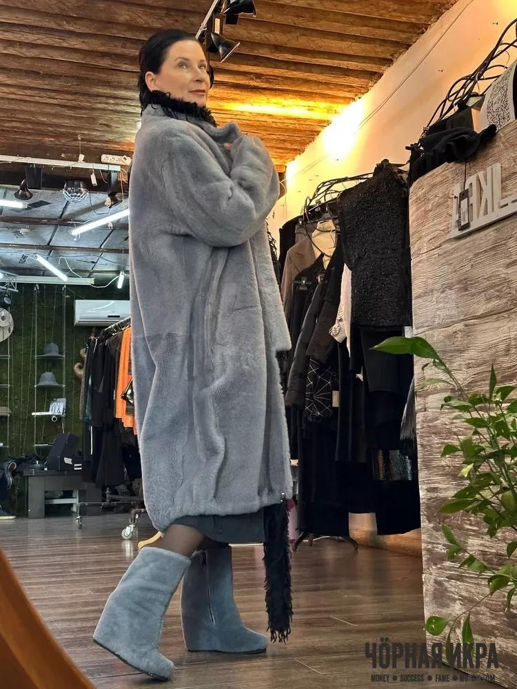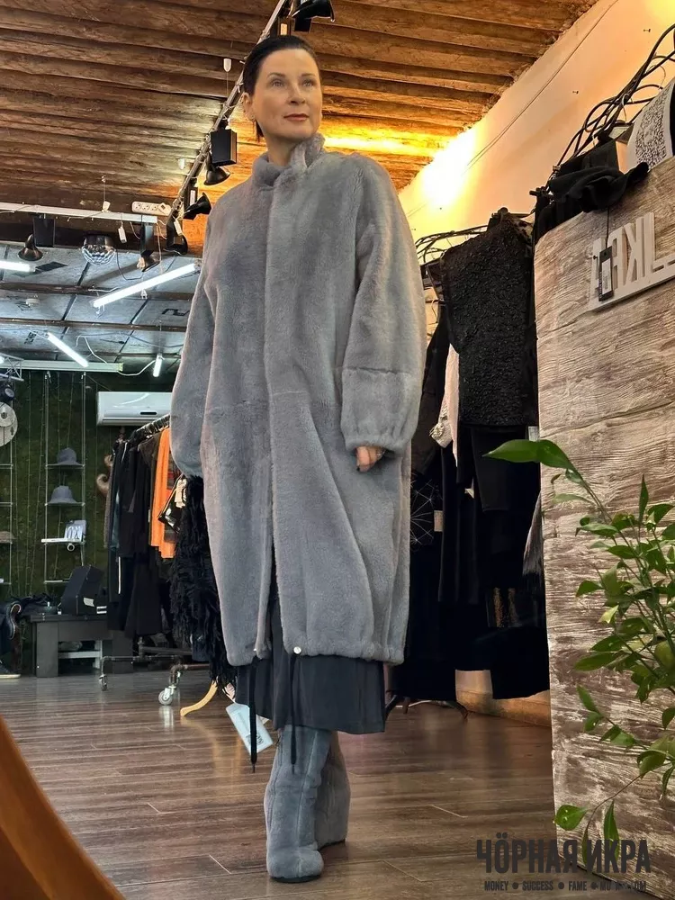 Мех овчины выглядит как облако, которое решило защищать от холода. Текстура натурального меха создаёт объём и глубину цвета, которых невозможно достичь с синтетикой. Серый оттенок — один из самых благородных цветов в природе, он работает абсолютно со всем.