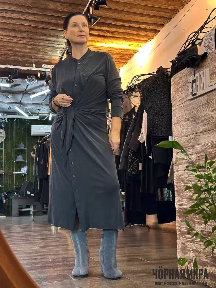 Платье NOSTRA SANTISSIMA с драпировкой — идеальная база под пальто. Состав с преобладанием купро (94%) создаёт мягкость и блеск, который хорошо смотрится под объёмным мехом. Длина миди позволяет носить платье как отдельно, так и с верхней одеждой. Размер 46 подходит на российские 46-48.