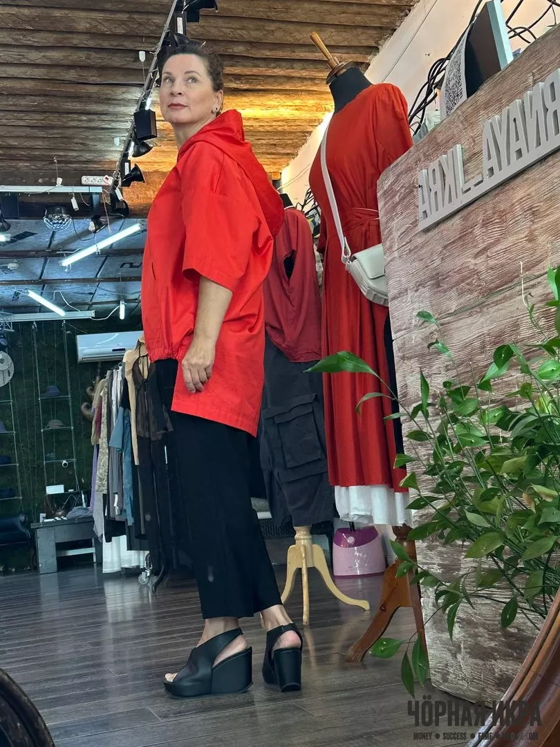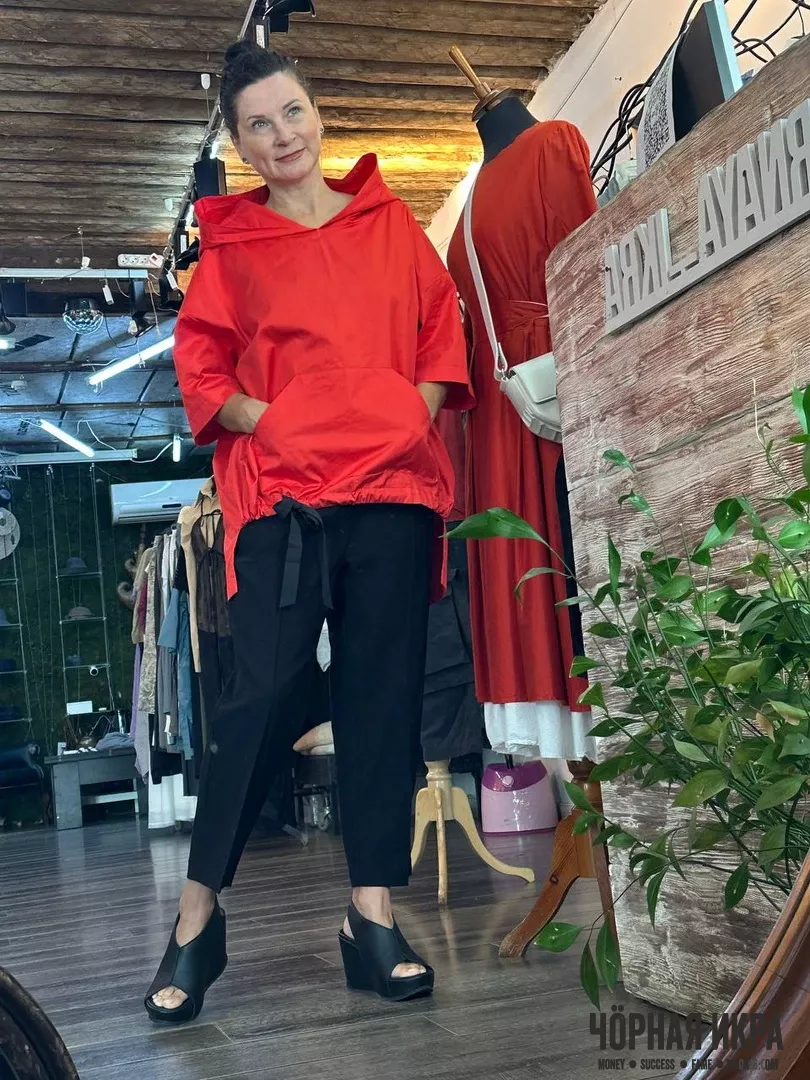 SEO-теги: Xenia Design, спорт-шик, топ с капюшоном, 100% хлопок, красный цвет, скидка 50%, размер XL.